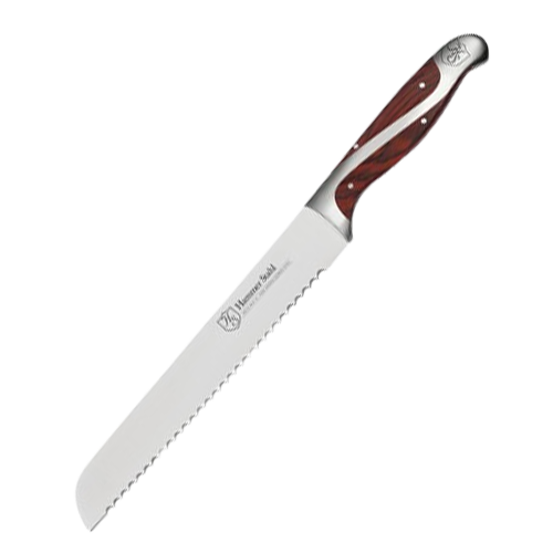The 8 inch Bread knife from Hammer Stahl is created with a sharp, scalloped edges that will cut through soft or crusty bread without crushing, tearing or leaving crumbs. Every kitchen needs a quality bread knife!