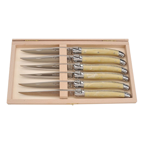 Jean Dubost Steak Knives with Light Horn Handles in Tray – Set of 6