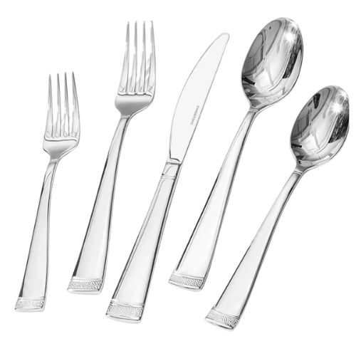 SILVERWARE SET INCLUDES: dinner knives (9 inch/2.76 oz), dinner forks (8.14 inch/2.35 oz),dinner spoons (8 inch/2.3 oz), salad forks (6.95 inch/1.68 oz) and teaspoons (6.8 inch/1.9 oz), 18/10 STAINLESS STEEL: The cutlery set is made of 18/10 food-grade stainless steel which is very durable and rust-proof. Meanwhile, the material is sturdy ensuring that silverware will not bend.