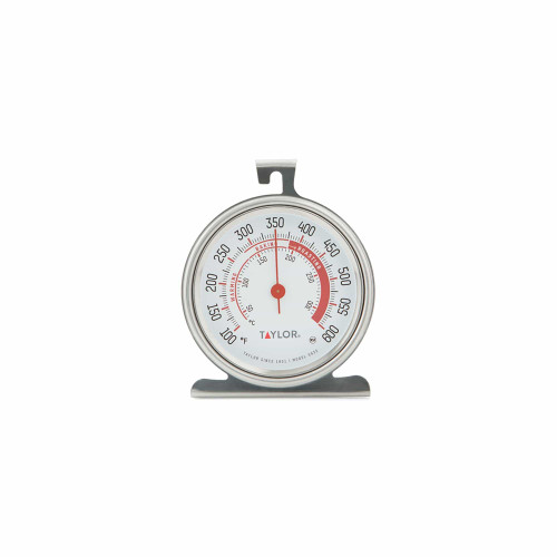 This oven thermometer features an extra-large (3.25”), colorful dial which is easy to read. It accurately measures temperatures from 100° to 600°F, with a red pointer. The stainless steel construction is strong, durable, and corrosion resistant.