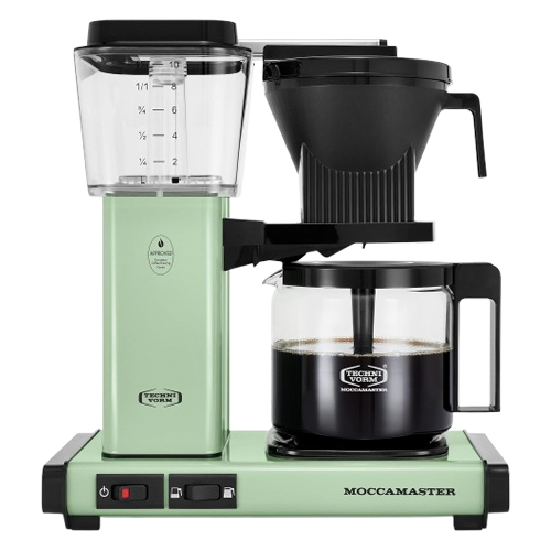 The Moccamaster 53925 KBGV Select 10 Cup Coffee Maker in Pistachio Green combines iconic design with precise brewing performance. With a 40 ounce or 1.25 liter capacity, it is ideal for families, offices, or anyone who enjoys brewing multiple cups of exceptional coffee at once.