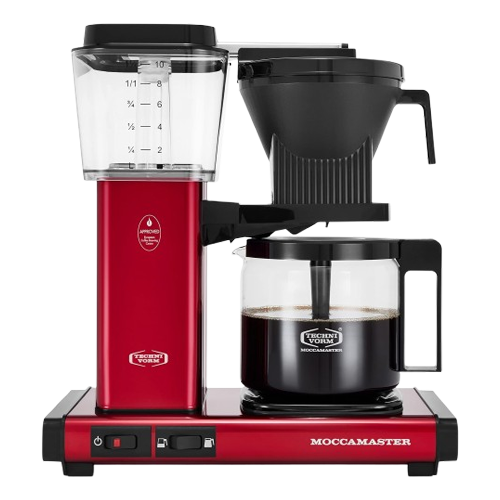 The Moccamaster 53944 KBGV Select 10 Cup Coffee Maker in Candy Apple Red combines precision brewing with a bold and eye catching design. With a 40 ounce or 1.25 liter capacity, this brewer is ideal for households, offices, and anyone who enjoys sharing great coffee.