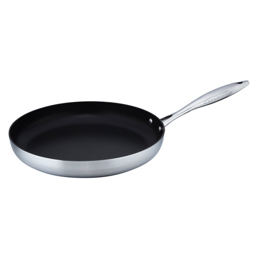 The CTX line by Scanpan features their patented Stratanium nonstick surface with ultra durable brushed stainless steel construction and ergonomic stainless steel handles. The Stratanium nonstick system developed by Scanpan consists of 5 layers in which hard particles and wave-like layers interlock to reinforce the nonstick layer. This surface sears, braise. deglazes, and is dishwasher and metal utensil safe. There is rapid, even heat distribution for excellent results.