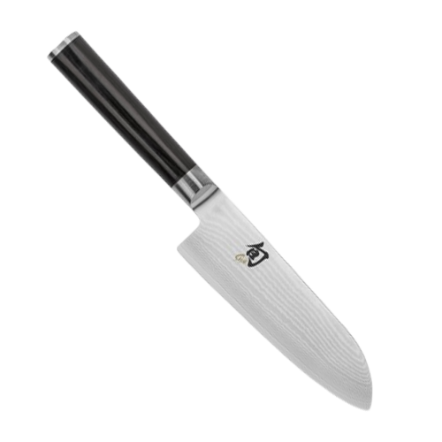 Shun Classic knives are renowned for their razor sharp cutting edge. They are made in Japan where samurai sword making gave rise to crafting these exceptional knives. Shun uses extremely hard VG-MAX steel as its core and layers it in 34 layers of stainless steel on each side of the blade. The layers of stainless steel protect the VG-MAX steel and provide the engaging Damascus finish. Sharpening to a 16° angle on each side allows for paper thin slicing. The cutting edge is hardened to 61 degrees Rockwell so it will rarely need sharpening. These knives have narrower, lighter blades that reduce fatigue when compared with most western knives. The handles are D shaped for an ergonomic fit. They are extremely durable and moisture resistant. The ebony PakkaWood handles have a classic presence and the metal end cap serves to protect and balance the knives. Shun knives should be washed by hand with a non scratch cloth or sponge, warm water, and mild dish soap. Rinse thoroughly and dry immediately. Never put these knives in the dishwasher as the chemicals in dishwasher soap can damage the finish. Avoid cutting on glass, ceramic, or stone boards as they will damage the knife edge.