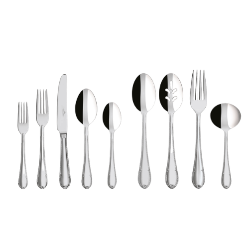 This set offers all the cutlery you need for a successful dining experience – ideal for all meals from breakfast to dinner, 12x Mademoiselle Dinner spoon, 12x Mademoiselle Dinner fork, 12x Mademoiselle Dinner knife, 12x Mademoiselle Dessert fork, 12x Mademoiselle Teaspoon, 1x Mademoiselle Flatware set