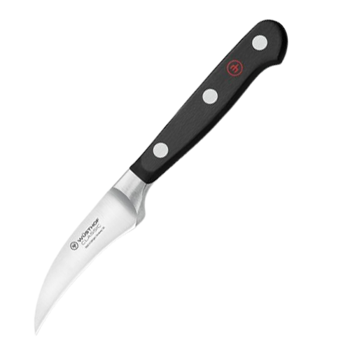 The Wusthof Classic 2.75″ Peeling Knife has a curved “Bird’s Beak” blade which is great fort he control you need when paring, trimming, coring, peeling or dicing fruits and vegetables.